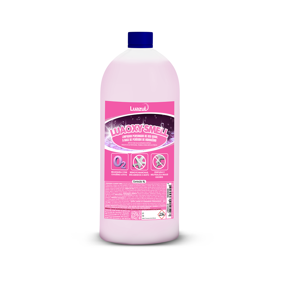 O LUAOXY SMELL é um limpador super concentrado a base de peróxido de hidrogênio. Possui oxigênio ativo que age sobre a sujeira de forma eficaz. Pode ser utilizado em tecidos e superfícies. Perfume exclusivo que branqueia e neutraliza maus odores.